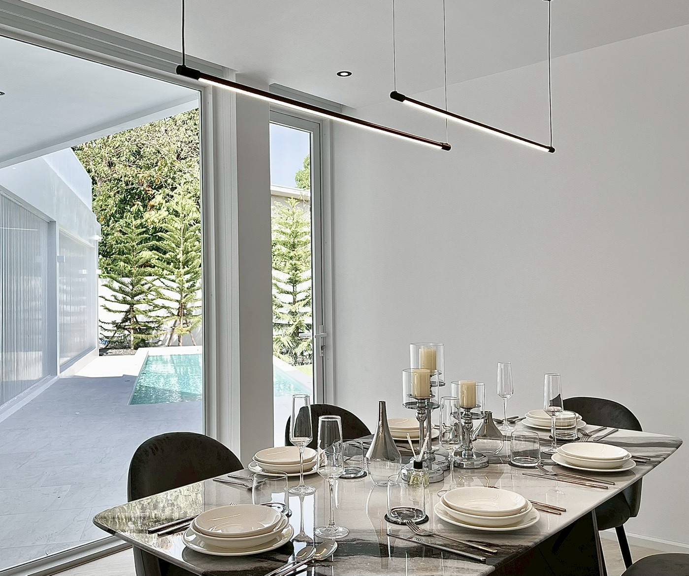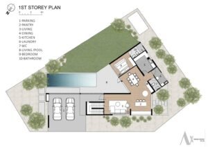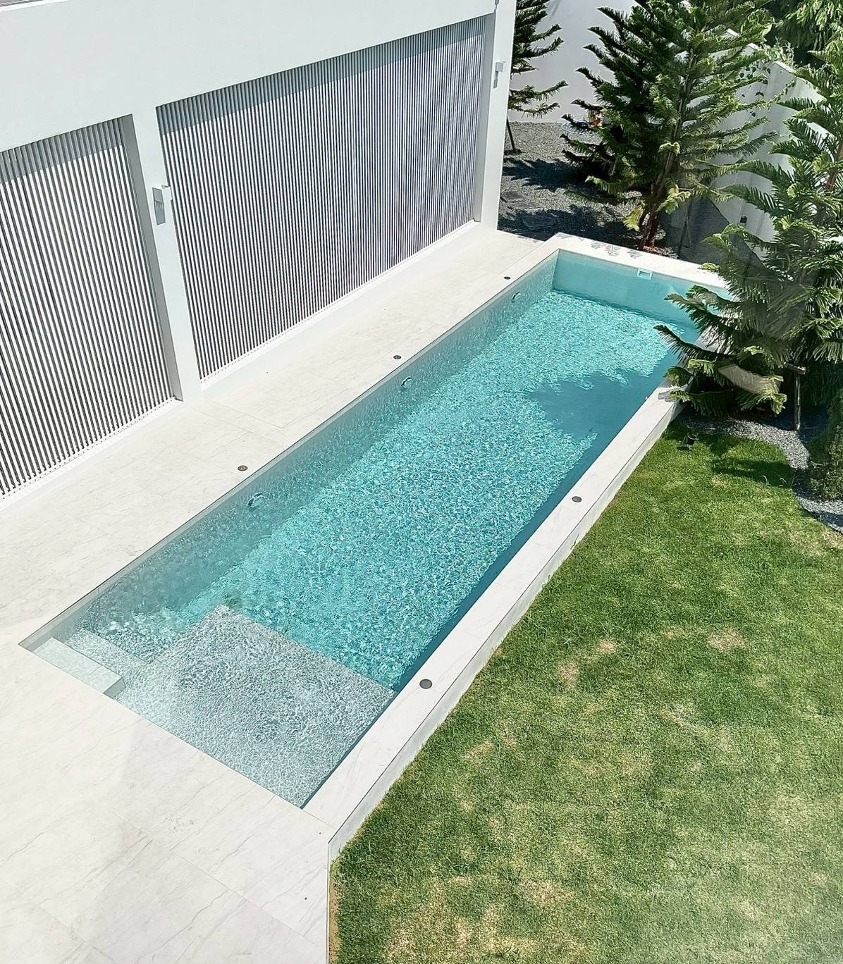 • สระน้ำพร้อมไฟเปลี่ยนสีได้ ระบบเกลือ 2.5x9m. โอบล้อมไปด้วยสวน